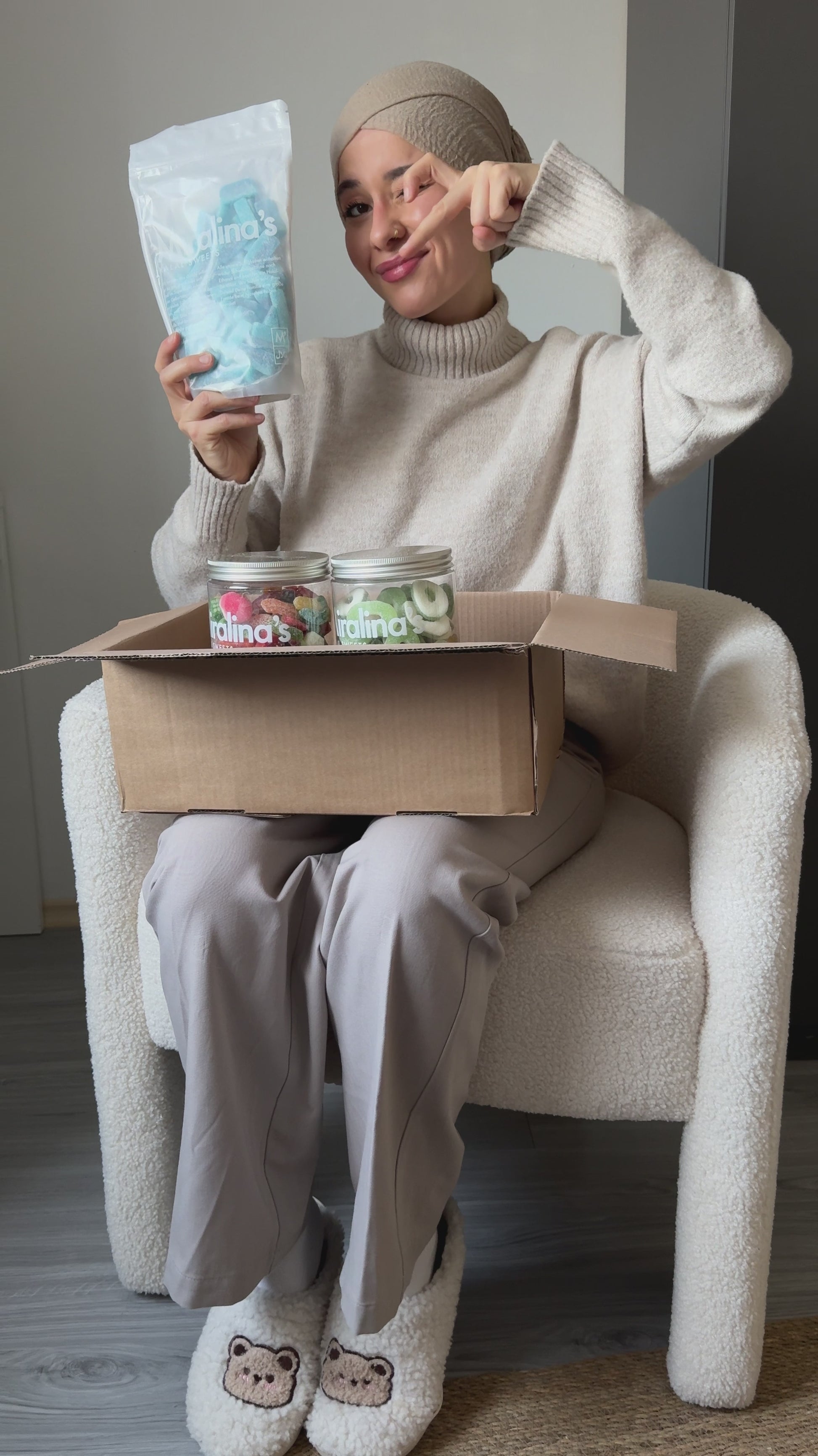 Die Süßigkeiten sind mit halal Rindergelatine oder vegan.
